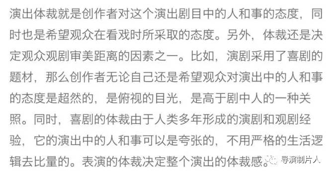 体裁就是对待剧本内容的态度以及他希望观众以什么样的态度去对待剧本里的人和事。